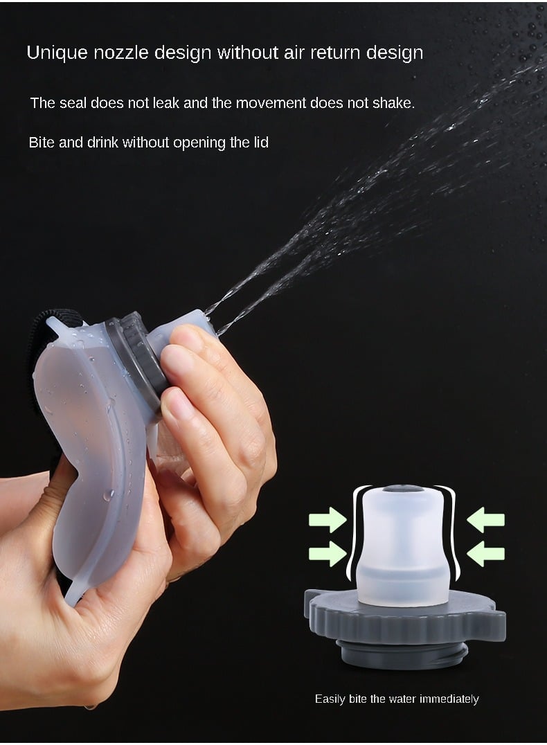 Safe and Convenient: Made from high-quality, food-grade silicone, our water bottle ensures safe and healthy hydration. Its innovative design allows for easy water access with a light bite to the silicone mouthpiece, making it exceptionally convenient while you're on the run.